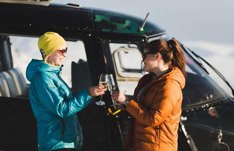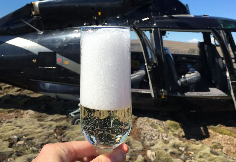 Once we land on one of the summits, you’ll have the photo opportunity of a lifetime while savoring your sparkling wine and enjoying the scenic coastal plain panorama, the cityscape of Reykjavik, and distant mountains. And, rest assured, we’ll fly you safely back to the city without any need for hiking.
